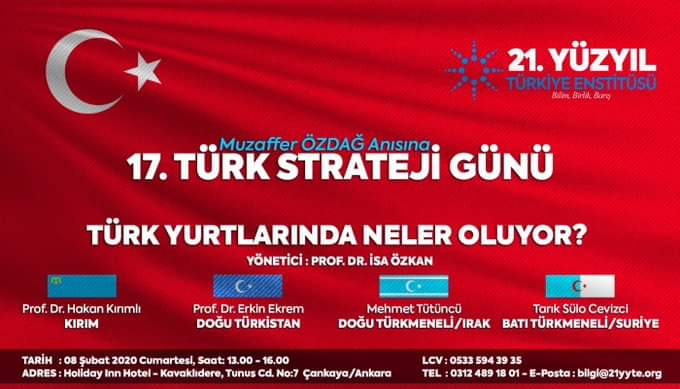 “Türk Yurtlarında Neler Oluyor?” temalı panelin yöneticiliğini Prof. Dr. İsa Özkan yaparken; Kırım konusunda Bilkent Üniversitesi Öğretim Üyesi Prof.Dr. Hakan Kırımlı, Doğu Türkistan konusunda Hacettepe Üniversitesi Öğretim Üyesi Prof.Dr. Erkin Ekrem, Doğu Türkmeneli/Irak konusunda Irak Türkmen Cephesi Türkiye Temsilcisi Mehmet Tütüncü, Batı Türkmeneli/Suriye konusunda Tarık Sülo Cevizci konuşmalarını gerçekleştirecek.